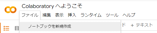 左上のメニューから「ファイル」→「ノートブックを新規作成」をクリック。