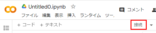 右上の接続をクリックするとPython(パイソン)でプログラミングできるようになります。